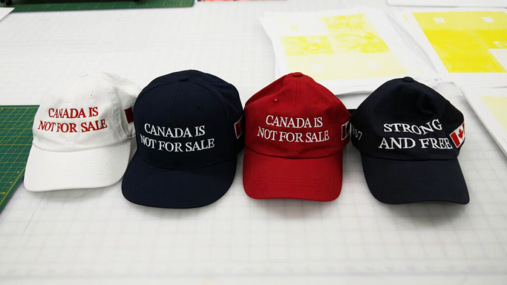 অটোয়াভিত্তিক একটি ডিজাইন ফার্মের প্রতিষ্ঠাতা লিয়াম মুনি ‘কানাডা বিক্রয়ের জন্য নয়’ লেখা টুপি তৈরি করেন। গত সপ্তাহে অটোয়ায় প্রধানমন্ত্রী জাস্টিন ট্রুডো এবং অন্যান্য প্রধানদের সঙ্গে বৈঠকে রাজনীতিবিদ ও ব্যবসায়ী অন্টারিও রাজ্যের প্রিমিয়ার (কানাডার রাজ্য সরকারের প্রধান) ডগ ফোর্ড টুপিটি পরেছিলেন, যার পর এই টুপিগুলো সবার নজরে আসে।