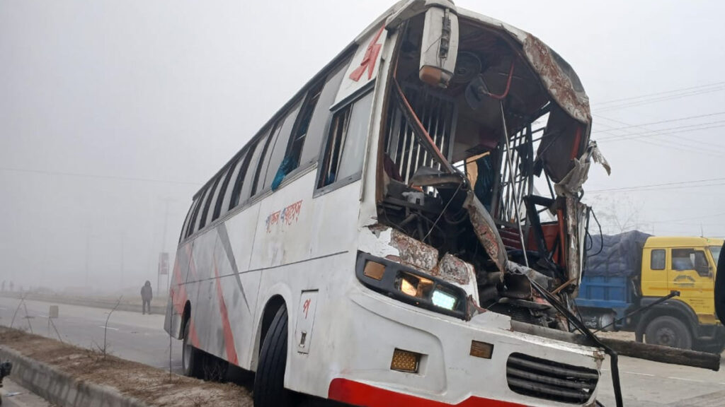 অন্যদিকে, হাইওয়ে পুলিশের রংপুর জোনের এসপি মোহাম্মদ তারিকুল ইসলাম জানান, সকাল পৌনে ৮টার দিকে রংপুর-ঢাকা মহাসড়কের পীরগঞ্জ বড়দরগাহ হাইওয়ে ফ্লাইওভারের দক্ষিণ পাশে সাতক্ষীরা শ্যামনগর থেকে ছেড়ে আসা সাদিকা তালুকদার এন্টারপ্রাইজ রাস্তারপাশে যাত্রী নামাচ্ছিলো। এ সময় ঘন কুয়াশার কারণে রংপুরগামী রংপুর এক্সপ্রেস পেছন দিক থেকে ধাক্কা দেয়। এতে দুটি বাসই দুমড়ে মুচড়ে যায়। ঘটনাস্থলেই মারা যায় সাতক্ষীরার কালিগঞ্জের পশিমী মৌতলা খানাবাড়ি এলাকার মৃত সামদানি খানের পুত্র আসলাম খান (৪৫)। এতে দুটি বাসের ২০ জন যাত্রী আহত হয়েছে। আহতদের মধ্যে ৬ জনকে রংপুর মেডিকেল কলেজ হাসপাতালে ভর্তি করা হয়েছে।