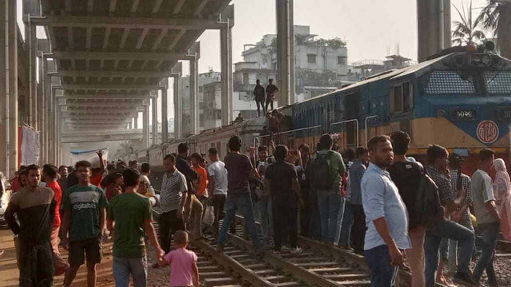 ঢাকার মহাখালীতে রেলপথ অবরোধের কারণে পদ্মা সংযোগ বাদে সারাদেশের সঙ্গে রেল যোগাযোগ বন্ধ হয়ে পড়েছে। কমলাপুরে রেল স্টেশনের ম্যানেজার শাহাদাত হোসেন এ তথ্য নিশ্চিত করেছেন।