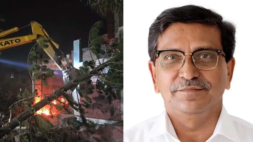 বুধবার রাত সাড়ে ৯টার দিকে বিভিন্ন স্লোগান দিয়ে বিক্ষুব্ধ ছাত্র-জনতা বাড়িটির সামনে আসে। একপর্যায়ে বাড়িটির একটি অংশে আগুন ধরিয়ে দেয়া হয়। পরে একটি এক্সকেভেটর দিয়ে বাড়িটি ভাঙার কার্যক্রম শুরু করে বিক্ষুব্ধরা। এ সময় বাড়িটির সামনে আইনশৃঙ্খলা রক্ষাকারী বাহিনীর সদস্যদের উপস্থিতি দেখা যায়নি।