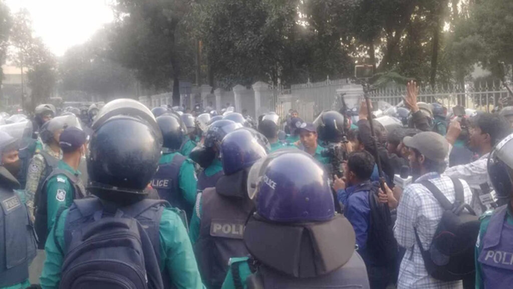 চার দফা দাবি আদায়ে রাজধানীর শাহবাগ থেকে পুলিশের ব্যারিকেড ভেঙে সচিবালয় অভিমুখে যাত্রা করেছেন মেডিকেল অ্যাসিস্ট্যান্টস ট্রেনিং স্কুলের (ম্যাটস) শিক্ষার্থীরা। রোববার (৯ ফেব্রুয়ারি) বিকেলে ব্যারিকেড ভেঙে সচিবালয় অভিমুখে যেতে চাইলে হাইকোর্ট এলাকার সামনে তাদের ধাওয়া দেয় পুলিশ।