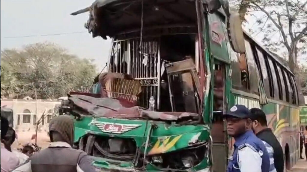 শনিবার (২২ ফেব্রুয়ারি) সকালে ঢাকা-খুলনা মহাসড়কের হিরন্নকান্দি এলাকায় এই দুর্ঘটনা ঘটে। নিহতরা হলেন, বাসচালক মন্টু শেখ(৫৫) ও সুপারভাইজার আরিফ হোসেন।