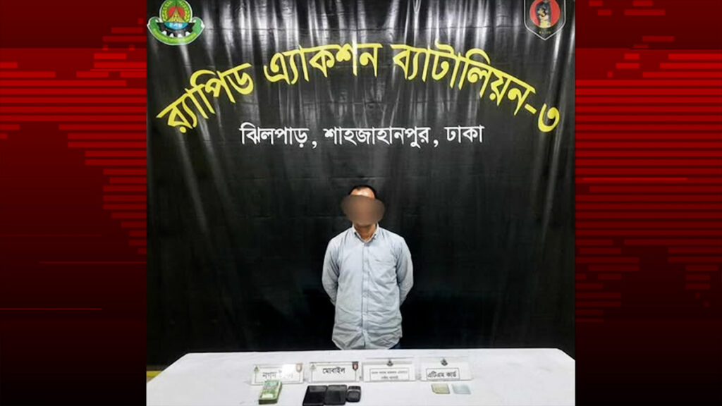 শনিবার (২২ ফেব্রুয়ারি) রাতে রাজধানীর কলাবাগান এলাকায় অভিযান চালিয়ে তাকে গ্রেফতার করে র্যাপিড অ্যাকশন ব্যাটালিয়ন-৩।