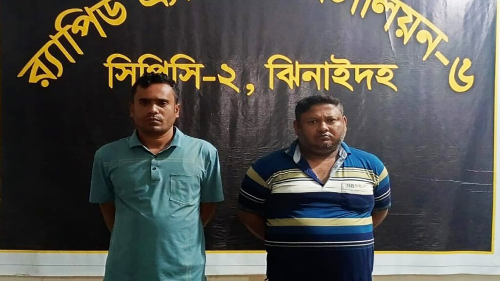 আটকরা হলেন, হরিনাকুণ্ডু উপজেলার দৌলতপুর ইউনিয়নের ছানোয়ার হোসেন সনুর ছেলে আবু সাইদ (৩৯) এবং একই উপজেলার জোড়াপুকুরিয়া গ্রামের আনজের হোসেনের ছেলে আনারুল ইসলাম (৩৬)।