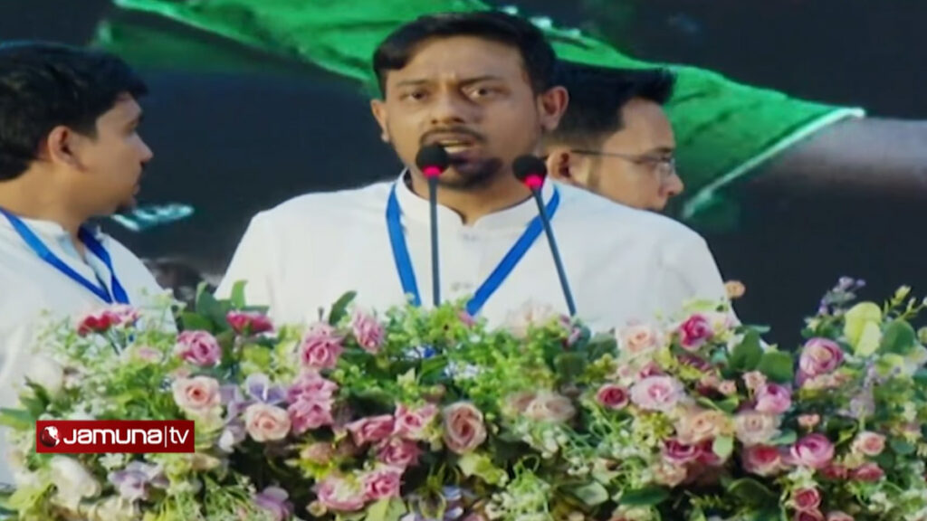 সারাদেশ থেকে এতে যোগ দেয়া মানুষজনকে স্যালুট জানিয়ে তিনি বলেন, আপনাদের এ কষ্টকে আমরা স্যালুট করি। আপনাদেরকে আমরা কোনো টাকা-পয়সা দিয়ে আনিনি। আপনাদেরকে কোনো লোভ দেখিয়ে এ জনসভায় উপস্থিত করিনি। কিন্তু আপনাদের সামনে আমরা একটি জিনিস দেখাতে সক্ষম হয়েছিলাম, সেটি হলো- একটি নতুন বাংলাদেশের স্বপ্ন, নতুন বাংলাদেশের আশা, নতুন বাংলাদেশের জাগরণ। এই জাগরণে আজ আপনারা ঐতিহাসিক পার্লামেন্টের সামনে উপস্থিত হয়েছেন, যেই পার্লামেন্টের সামনে থেকে ছাত্র-জনতা ঐতিহাসিক ৫ আগস্টে শেখ হাসিনা এবং তার দোসরদেরকে দেশ থেকে পালাতে বাধ্য করেছিল। আজ আমরা ঐতিহাসিক একটি সময় একই পার্লামেন্টের সামনে একটি রাজনৈতিক দলের ঘোষণার জন্য উপনীত হয়েছি।