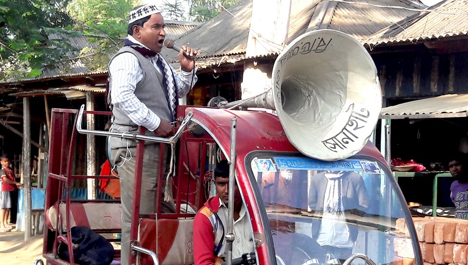 কর্মী নেই, প্রার্থীর নিজেই মাইকিং করে প্রচারণা!