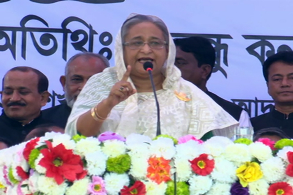 যুদ্ধাপরাধী ও খুনীদের সঙ্গে হাত মিলিয়ে যারা ক্ষমতায় আসতে চায়, ভোটের মাধ্যমে তাদের উপযুক্ত জবাব দিতে হবে। বিকালে গোপালগঞ্জের কোটালীপাড়ায় শেখ লুৎফুর রহমান ডিগ্রি কলেজ মাঠের জনসভায় এ কথা বলেছেন প্রধানমন্ত্রী শেখ হাসিনা। এই জনসভার মধ্য দিয়ে আনুষ্ঠানিকভাবে নির্বাচনী প্রচারণা শুরু করলেন তিনি।