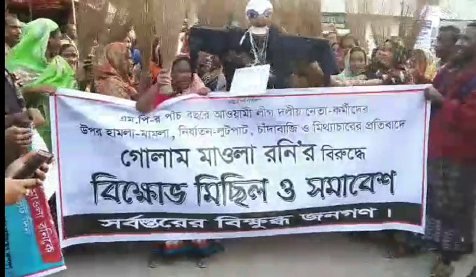 গোলাম মাওলা র‌নির বিরুদ্ধে ঝাড়ু মি‌ছিল