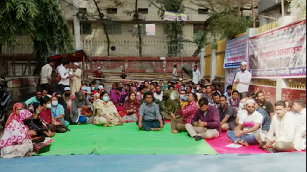 বৃহস্পতিবার (৬ মার্চ) সকালে রাজধানীর বিজয় নগরে শ্রম ভবনের সামনে এই অবস্থান কর্মসূচি পালন করেন তারা।