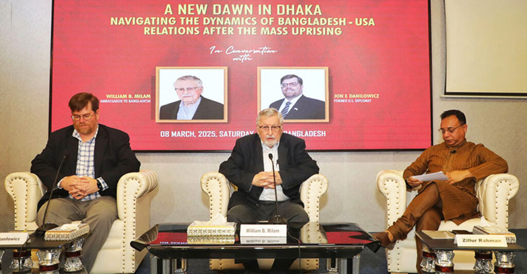 অনুষ্ঠানে প্রশ্নোত্তর পর্বে শিক্ষার্থী, রাজনীতিক, নাগরিক সমাজের প্রতিনিধিদের বিভিন্ন প্রশ্নের উত্তর দেন রাষ্ট্রদূত উইলিয়াম বি মাইলাম ও সাবেক মার্কিন কূটনীতিক জন এফ ড্যানিলোভিচ।