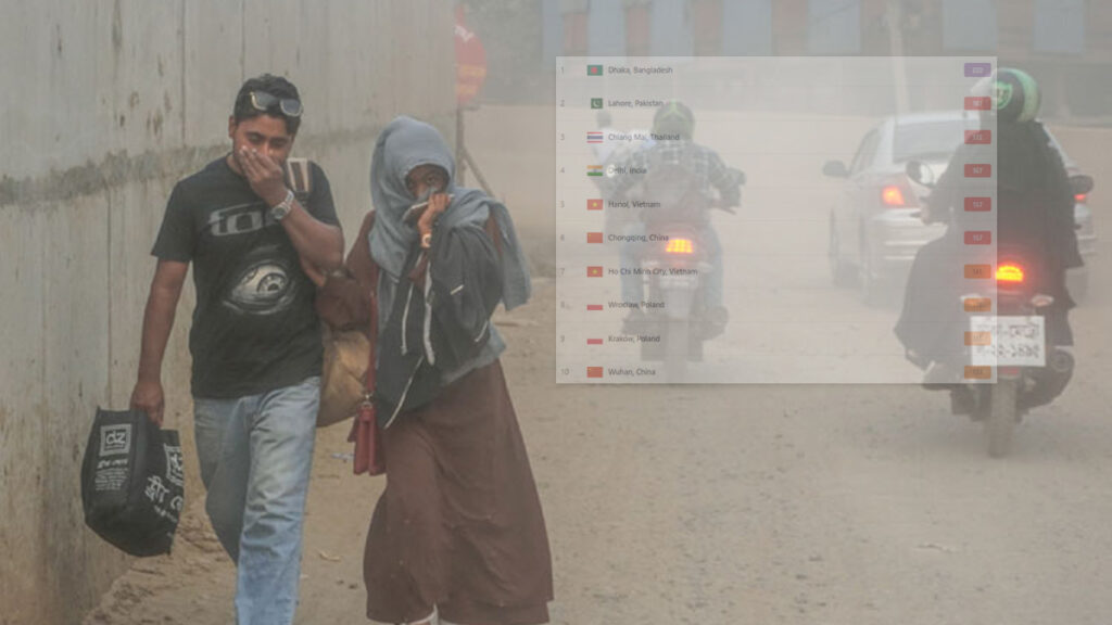 সংস্থাটি জানায়, ২২২ স্কোর নিয়ে বায়ুদূষণের তালিকার শীর্ষে অবস্থান করছে বাংলাদেশের রাজধানী ঢাকা। অর্থাৎ এখানকার বাতাসের মান বসবাসকারীদের জন্য ‘খুব অস্বাস্থ্যকর’। পরের স্থানে থাকা পাকিস্তানের লাহোরের স্কোর ১৮৭। সেখানকার বাতাস নাগরিকদের জন্য ‘অস্বাস্থ্যকর’।