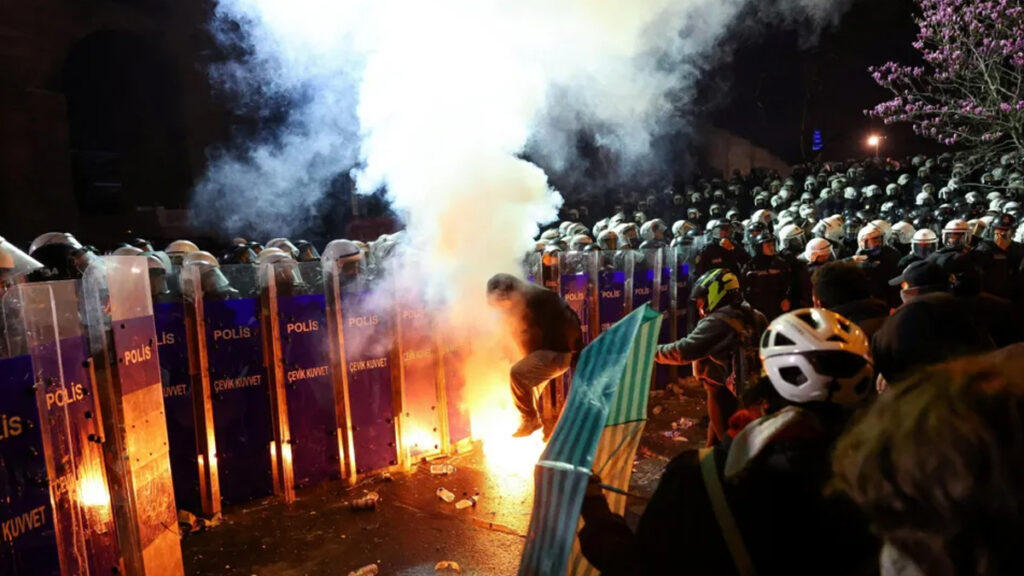 সংঘাত-সহিংসতায় উত্তাল তুরস্কের রাজপথ। তুরস্কের প্রেসিডেন্ট তুরস্কের প্রেসিডেন্ট রিসেপ তাইয়েপ এরদোয়ানের প্রধান রাজনৈতিক প্রতিদ্বন্দ্বী এবং ইস্তাম্বুলের মেয়র একরেম ইমামোগলুর গ্রেফতারের প্রতিবাদে রাজধানী আঙ্কারা, ইস্তাম্বুলসহ অনেক শহরে চলছে বিক্ষোভ। বিরোধী দল এবং সরকারের সমালোচকরা এই গ্রেফতারকে তুর্কি গণতন্ত্রের জন্য একটি বড় আঘাত হিসেবে দেখছেন। রোববার (২৩ মার্চ) এক প্রতিবেদনে ব্রিটিশ সংবাদমাধ্যম বিবিসি নিউজ এ তথ্য জানায়।