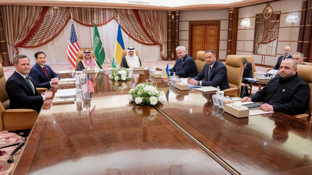 সৌদি আরবে ফের আলোচনার টেবিলে বসেছেন যুক্তরাষ্ট্র ও রাশিয়ার কর্মকর্তারা। পূর্বনির্ধারিত সময় অনুযায়ী আজ সোমবার (২৪ মার্চ) এক বৈঠকে মিলিত হয়েছেন তারা। এক প্রতিবেদনে সংবাদমাধ্যম এবিসি নিউজ এ তথ্য জানায়।