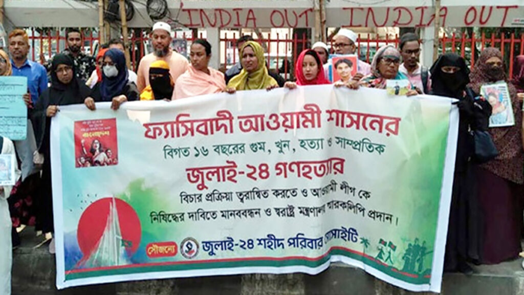 আওয়ামী লীগকে নিষিদ্ধের দাবিতে আন্তর্জাতিক অপরাধ ট্রাইব্যুনালের সামনে মানববন্ধন করেছে জুলাই-আগস্ট আন্দোলনে শহীদ পরিবারের সদস্যরা।