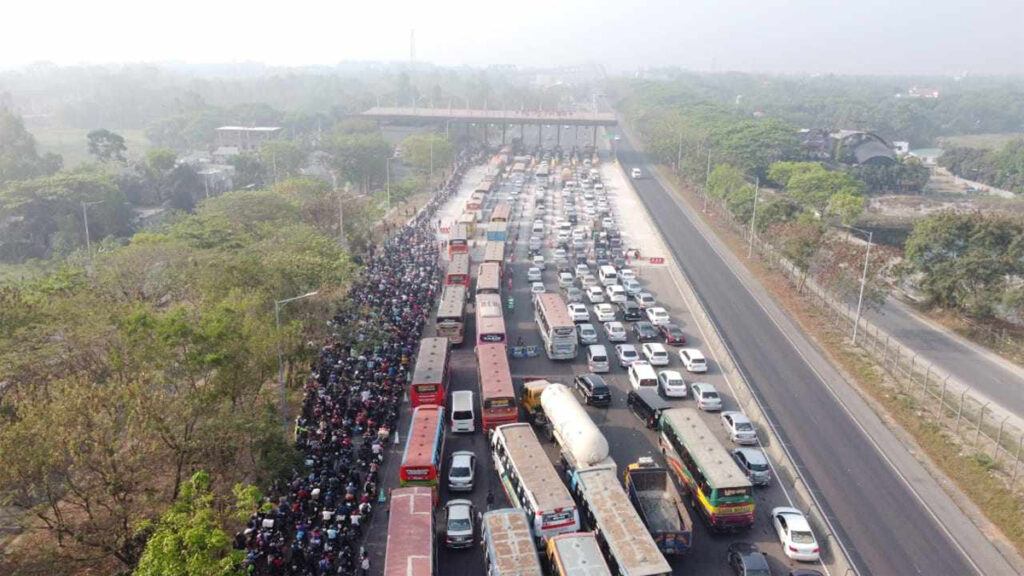 এদিকে আজ শনিবার সকাল থেকে মোটরসাইকেলসহ ব্যাক্তিগত যানবাহন, গণপরিবহনে করে বাড়ির পানে ছুটতে দেখা যায় ঈদ যাত্রীদের।
