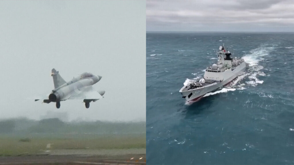 সমুদ্রের উত্তাল ঢেউকে উপেক্ষা করে চলেছে বিশাল যুদ্ধ জাহাজ। আকাশ কাঁপিয়ে উড়ছে অত্যাধুনিক ফাইটার জেট। তাইওয়ানকে ঘিরে হঠাৎ যেন রণপ্রস্তুতি চীনের।