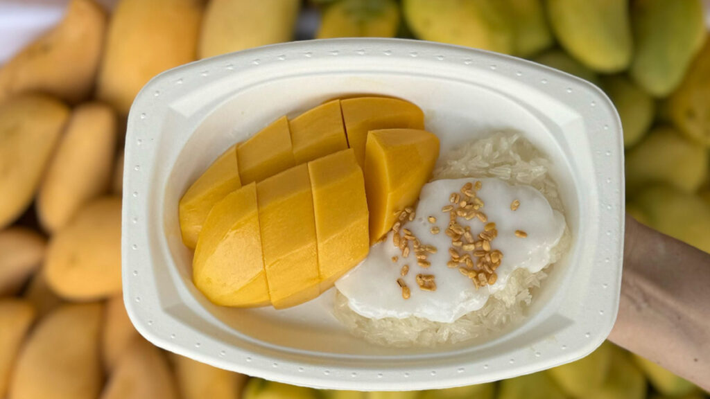 বিশ্বব্যাপী ‘ম্যাঙ্গো স্টিকি রাইস’ নামে পরিচিত এই ডিশটি দেখতে সহজ মনে হলেও এর স্বাদে রয়েছে নিখুঁত ভারসাম্য। প্রথমে, পাকা আমের টুকরোগুলো নারকেলের ক্রিম সসে ঢেকে দেয়া হয়। এরপর দেয়া হয় ভাত। তার ওপর ছিটিয়ে দেয়া হয় হালকা ভাজা মুগ ডাল।