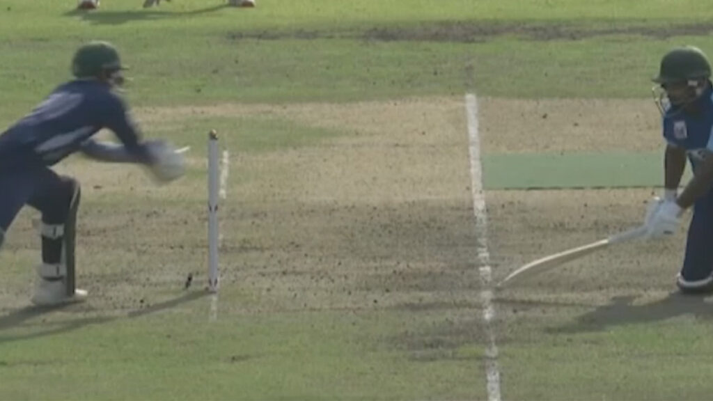 আগে ব্যাট করে ৪১ ওভারে ১৭৮ রান তুলে অলআউট হয় গুলশান ক্রিকেট ক্লাব। লক্ষ্য তাড়ায় ব্যাটিংয়ে নেমে জয়ের কাছাকাছি পৌঁছে যায় শাইনপুকুর। শেষ উইকেটে জয়ের জন্য মাত্র ৭ রান প্রয়োজন ছিল দলটির। হাতে তখন ৪১ বল ছিল। ম্যাচের এমন মুহূর্তেই দলটির ব্যাটার সাব্বির এই অদ্ভুতুরে আউট হন।