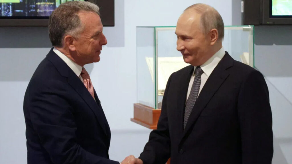 যুক্তরাষ্ট্রের প্রেসিডেন্ট ডোনাল্ড ট্রাম্পের বিশেষ দূত স্টিভ উইটকফ রাশিয়ায় পৌঁছেছেন। শুক্রবার (১১ এপ্রিল) সেন্ট পিটার্সবার্গে মার্কিন বিশেষ দূত স্টিভ উইটকফ রাশিয়ার প্রেসিডেন্ট ভ্লাদিমির পুতিনের সাথে বৈঠক করেছেন। এ সময় ডোনাল্ড ট্রাম্প পুতিনকে ইউক্রেন সংকটে দ্রুত ‘যুদ্ধবিরতির দিকে এগিয়ে আসতে’ আহ্বান জানিয়েছেন। এক প্রতিবেদনে ব্রিটিশ সংবাদমাধ্যম বিবিসি নিউজ এ তথ্য জানায়।