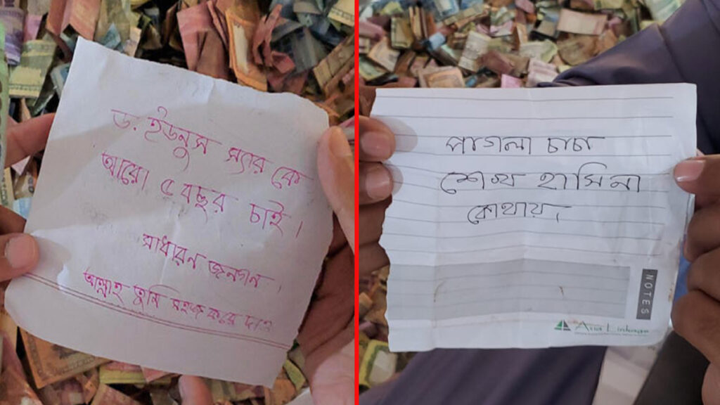 পাগলা মসজিদের দানবাক্স খুলে দেশি-বিদেশি মুদ্রা এবং স্বর্ণ-রৌপ্যলঙ্কারের সঙ্গে অসংখ্য চিরকুটের ভিড়ে মিললো ‘পাগলা চাচা শেখ হাসিনা কোথায়’ এবং ‘ড. ইউনূসকে আরও পাঁচ বছর চাই’ চিরকুট!