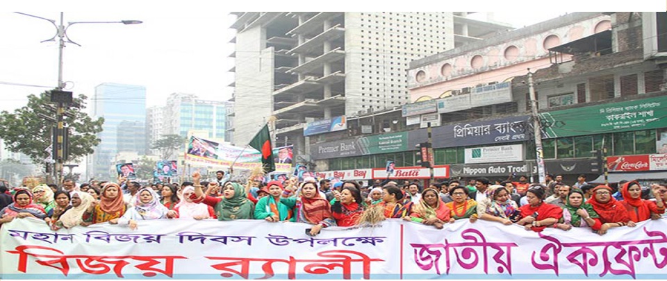 মহান বিজয় দিবস উপলক্ষে নতুন রাজনৈতিক জোট ঐক্যফ্রন্টের বিজয় র‍্যালিতেও ছিল বেগম খালেদা জিয়ার মুক্তির স্লোগান।