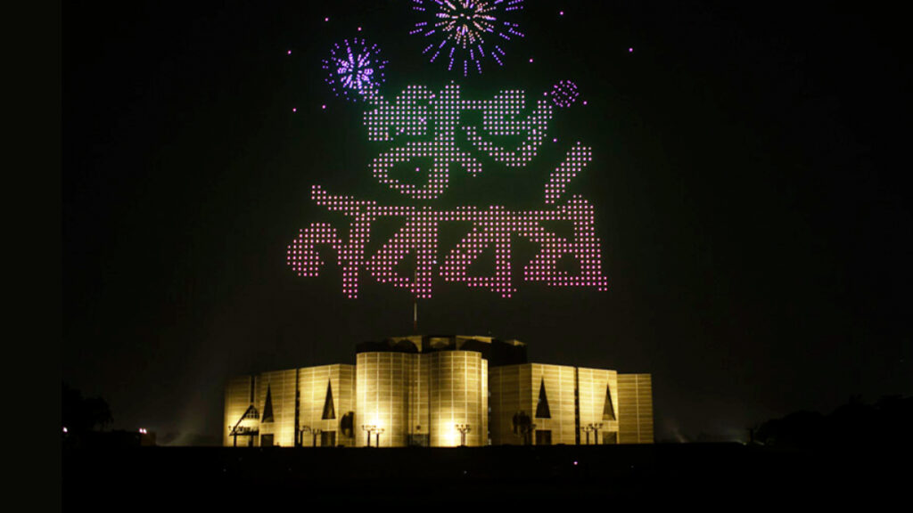 বাংলা নববর্ষ ১৪৩২-এর প্রথম দিনে রাজধানীর মানিক মিয়া অ্যাভিনিউতে প্রদর্শিত হয়েছে ড্রোন শো। তাতে সন্ধ্যার পর ঢাকার আকাশ হয়ে ওঠে ঝলমলে। হাজার হাজার দর্শক উপভোগ করেন এই শো।