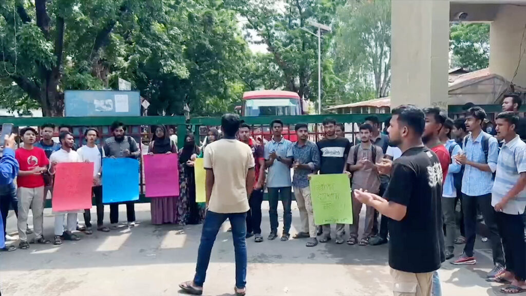 আন্দোলনকারীরা জানান, সোমবার (১৪ এপ্রিল) দিবাগত রাতে বিশ্ববিদ্যালয় সংলগ্ন রেল ক্রসিং এলাকায় বৈষম্যবিরোধী ছাত্র আন্দোলনের নেতা সুলতানুল আরেফিনকে মারধর করে দুর্বৃত্তরা। ঘটনাটি তখনই বিশ্ববিদ্যালয় প্রশাসনকে জানালেও তারা কোনো ব্যবস্থা নেয়নি বলে অভিযোগ করেন ক্ষুব্ধ শিক্ষার্থীরা। পরে রাতেই মূল ফটকে তালা দেন তারা। ঘটনার সাথে জড়িতদের দৃষ্টান্তমূলক শাস্তির দাবিতে চলে বিক্ষোভ।