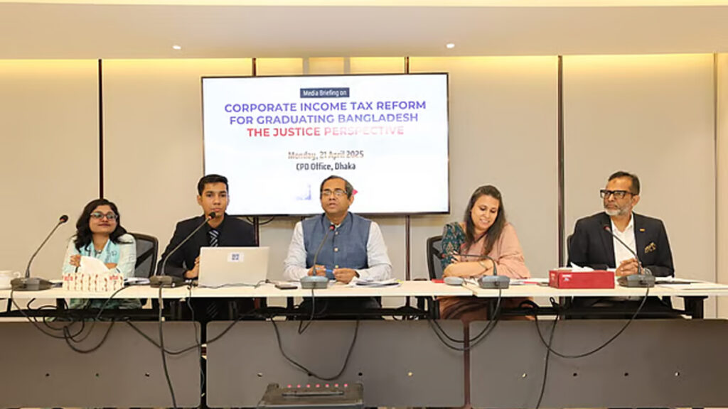 সোমবার (২১ এপ্রিল) সকালে সংস্থাটি রাজধানীতে করপোরেট ইনকাম ট্যাক্স বিষয়ে ব্রিফিং করে। তাতে সিপিডির গবেষণা পরিচালক ড. খন্দকার গোলাম মোয়াজ্জেম কর ন্যাযতা নিশ্চিত করার আহ্বান জানান।