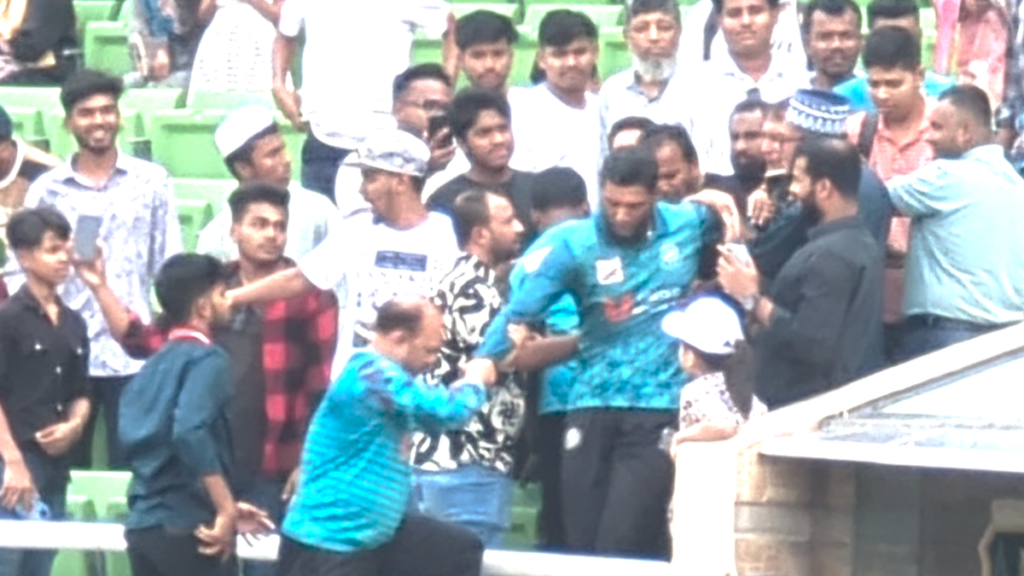 রিয়াদ উত্তেজিত হয়ে ওঠেন তার কিছুক্ষণ পরই। ক্রিকেটাররা যাচ্ছিলেন ড্রেসিং রুমের দিকে। মোহামেডানের ড্রেসিং রুমে ঢোকার মুখে গ্র্যান্ড স্ট্যান্ড গ্যালারি থেকে এক দর্শক রিয়াদকে লক্ষ্য করে কিছু একটা বলেন। তাতেই মেজাজ হারিয়ে ফেলেন তিনি। উপস্থিত অনেকের ক্যামেরা রিয়াদের রাগান্বিত সে সময়ের দৃশ্য ধারণ করে।