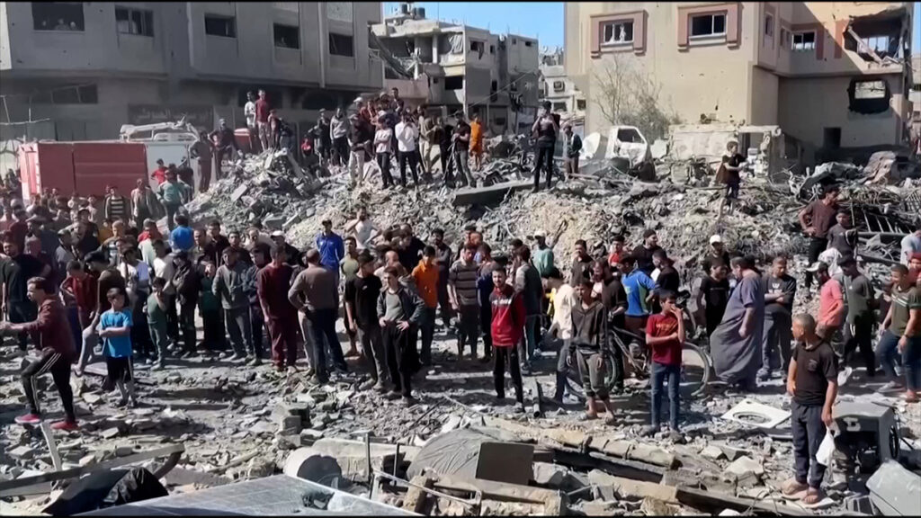 জাবালিয়ার উত্তরে ভয়াবহ হামলায় বিধ্বস্ত হয়েছে বেশ কয়েকটি বাড়িঘর। ধ্বংসস্তূপের মধ্য থেকে উদ্ধার করা হয়েছে ৫ জনের মরদেহ। শঙ্কা, চাপা পড়ে আছেন আরও অনেকে। প্রয়োজনীয় সরঞ্জাম ছাড়াই চলছে উদ্ধার অভিযান।
