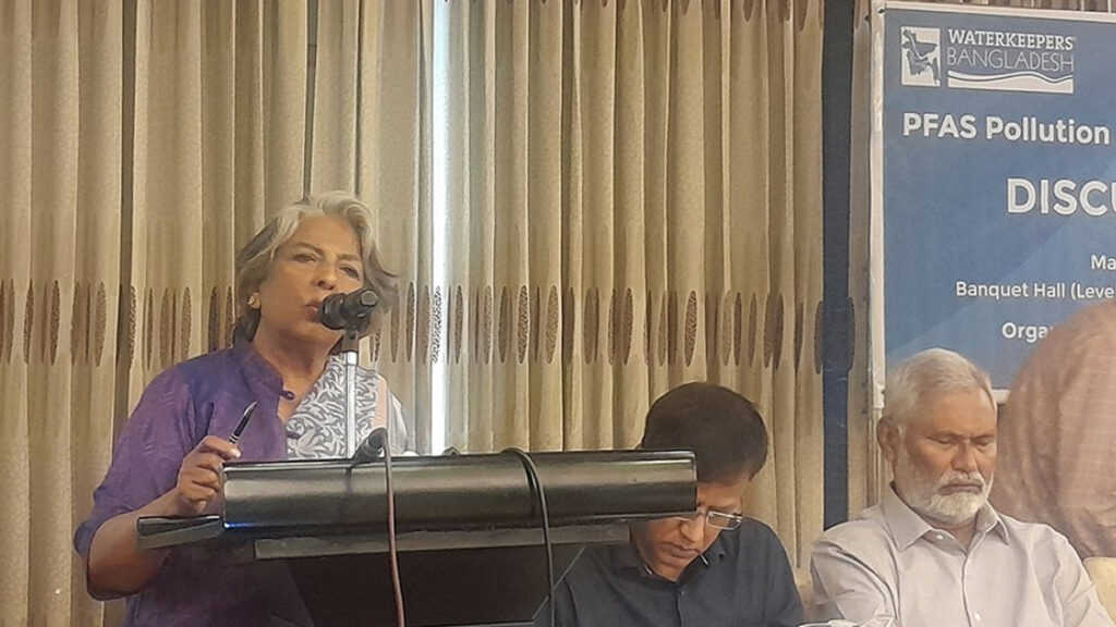 শনিবার (৩ এপ্রিল) দুপুরে রাজধানীর একটি হোটেলে ওয়াটার কিপার্স বাংলাদেশ আয়োজিত ‘পিএফএস: পলিউশন অ্যান্ড পাবলিক হেলথ ইন বাংলাদেশ’ শীর্ষক আলোচনা সভায় তিনি এসব কথা বলেন।