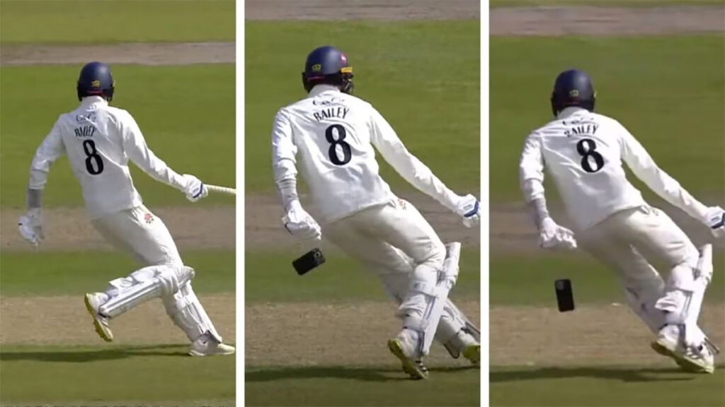 ইংল্যান্ডের কাউন্টির ম্যাচে গ্লুচেস্টারশায়ারের বিপক্ষে ১০ নম্বরে ব্যাট করতে নেমেছিলেন বেইলি। ম্যাচের ১১৪তম ওভারের ঘটনা। জোশ শ’র করা বলে দ্বিতীয় রান নিতে গিয়ে নন-স্ট্রাইকার প্রান্তে পৌঁছতেই আচমকা তার পকেট থেকে একটি মোবাইল ফোন মাটিতে পড়ে যায়।