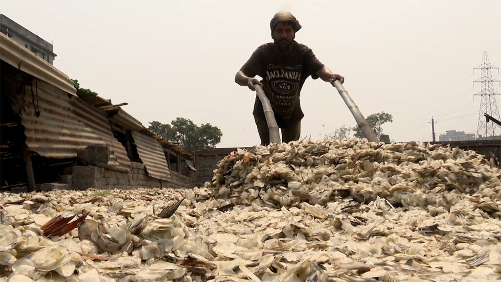 চূড়ান্ত বাছাইয়ের পর আবারও রোদে দেয়া হয় মাছের সাদা আঁশগুলো। শ্রমিকরা জানান যতোক্ষণ পর্যন্ত সূর্যের আলোতে মাছের আঁশ দেখতে মুক্তার মতো না হয় ততোক্ষণ চলে এই শুকানোর প্রক্রিয়া।