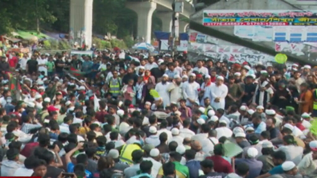 শনিবার সকালে কিছুটা কম থাকলেও বেলা বাড়ার সাথে সাথে শাহবাগ মোড়ে জনসমাগম বাড়তে থাকে। বিকেল তিনটার দিকে প্রথমে এনসিপির উত্তরাঞ্চলের মুখ্য সংগঠক সারজিস আলম ও কিছুক্ষণ পর দক্ষিণাঞ্চলের মুখ্য সংগঠক হাসনাত আবদুল্লাহ শাহবাগে আসেন।কর্মসূচিতে এনসিপি, জামায়াতে ইসলাম, হেফাজত ইসলাম, ইসলামী আন্দোলন, অভ্যুত্থানে নিহত পরিবারের সদস্যসহ সাধারণ মানুষ অংশ নিয়েছেন। এ সময় আওয়ামী লীগ নিষিদ্ধের দাবিতে নানা স্লোগান দিতে থাকেন তারা।