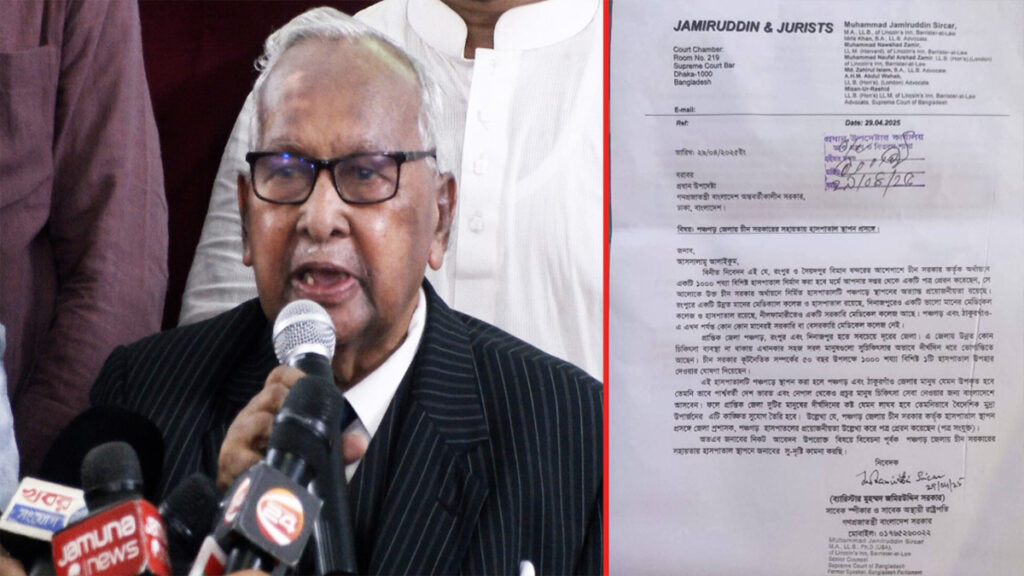 কূটনৈতিক সম্পর্কের ৫০ বছর উপলক্ষ্যে দেশের উত্তরাঞ্চলে এক হাজার শয্যা বিশিষ্ট একটি হাসপাতাল উপহার দেয়ার ঘোষণা দিয়েছে চীন সরকার। হাসপাতালটি সর্ব উত্তরের জেলা পঞ্চগড়ে স্থাপনের দাবিতে প্রধান উপদেষ্টা বরাবর আবেদন করেছেন সাবেক স্পিকার ও ভারপ্রাপ্ত রাষ্ট্রপতি ব্যারিস্টার জমিরউদ্দিন সরকার।