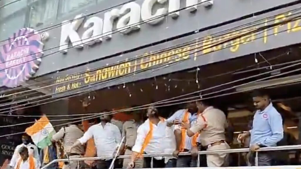 প্রতিবেদনে বলা হয়, আরজিআই বিমানবন্দর থানা এলাকার শামশাবাদ শাখায় স্থানীয় সময় বিকেল ৩টার দিকে করাচি বেকারিতে ভাঙচুর করা হয়। গেরুয়া শাল পরিহিত ভাঙচুরকারীরা পাকিস্তানি পতাকা পদদলিত করে এবং পাকিস্তানের বিরুদ্ধে স্লোগান দেয়।