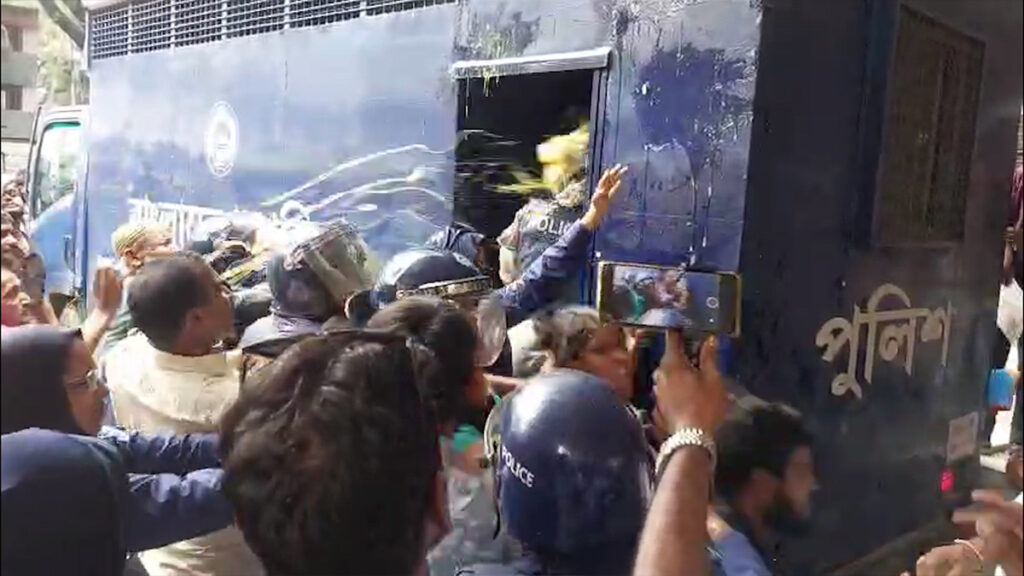 এ সময়, আদালত থেকে বের করে প্রিজনভ্যানে তোলার সময় তাকে লক্ষ্য করে ডিম ও জুতা নিক্ষেপের ঘটনা ঘটে।