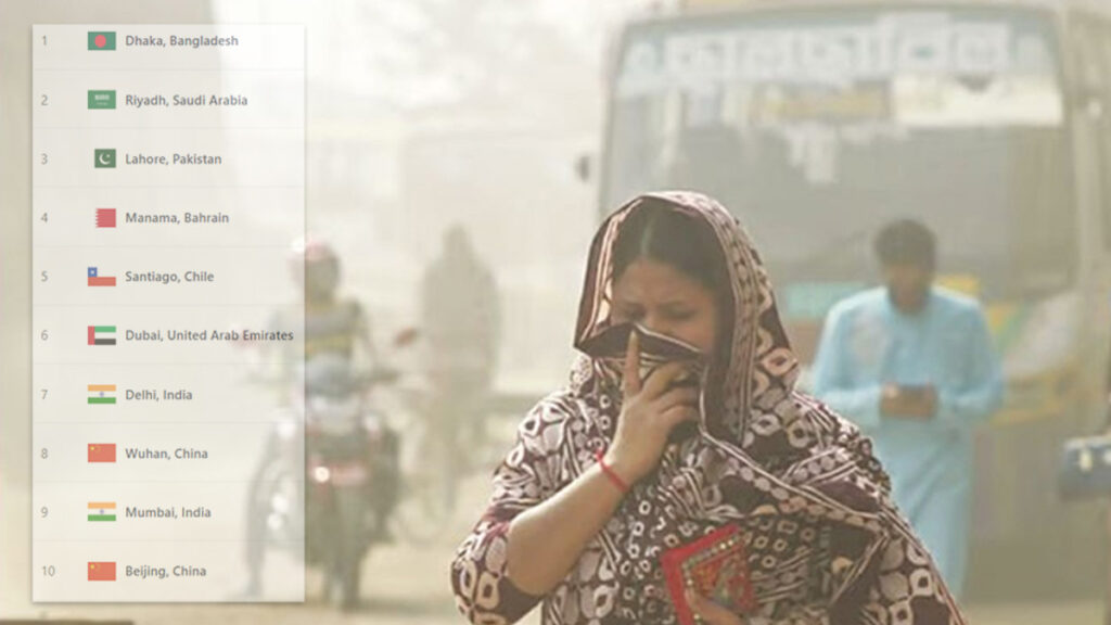 এদিকে, বিশ্বের দূষিত শহরের তালিকায় আজ প্রথম দিকে থাকা তিনটি শহরের বাতাসই অস্বাস্থ্যকর। শীর্ষ তিনে থাকা বাকি অপর দুই শহর সৌদির রিয়াদ ও পাকিস্তানের লাহোর; যাদের স্কোর যথাক্রমে ১৫৩ ও ১৫২।