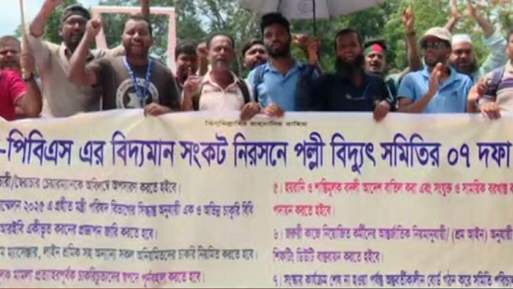পল্লী বিদ্যুৎ উন্নয়ন বোর্ড চেয়ারম্যানের অপসারণসহ ৭ দফা দাবিতে টানা ৭ দিন ধরে আন্দোলন করছেন পল্লী বিদ্যুৎ সমিতির কয়েক হাজার কর্মকর্তা-কর্মচারী।