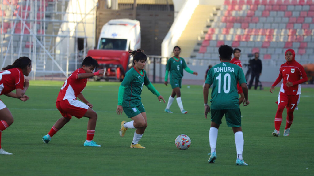 জর্দানে অনুষ্ঠিত ত্রিদেশীয় ফুটবল টুর্নামেন্টে নিজেদের প্রথম ম্যাচে ইন্দোনেশিয়ার সঙ্গে গোলশূন্য ড্র করেছে বাংলাদেশ নারী ফুটবল দল।