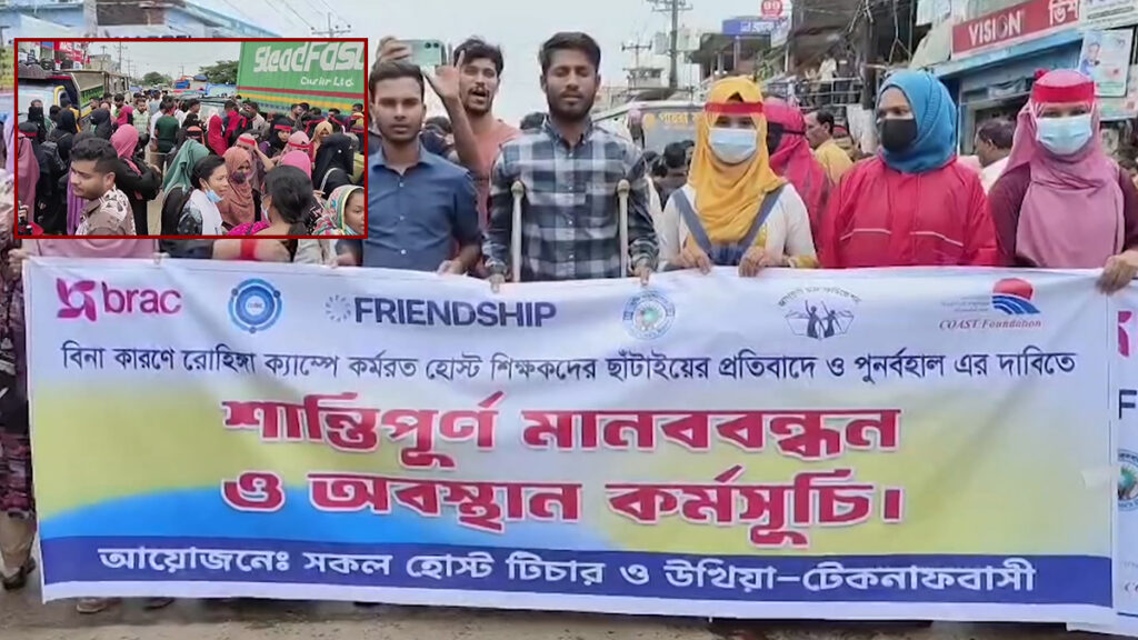 কক্সবাজারের উখিয়া ও টেকনাফের রোহিঙ্গা ক্যাম্পে কয়েকটি শিক্ষাপ্রতিষ্ঠান থেকে ১২৫০ শিক্ষককে একযোগে চাকরিচ্যুতির প্রতিবাদে কক্সবাজার- টেকনাফ আঞ্চলিক মহাসড়ক ৬ ঘণ্টা অবরোধ ও বিক্ষোভ করেছে ভুক্তভোগী শিক্ষকরা।
