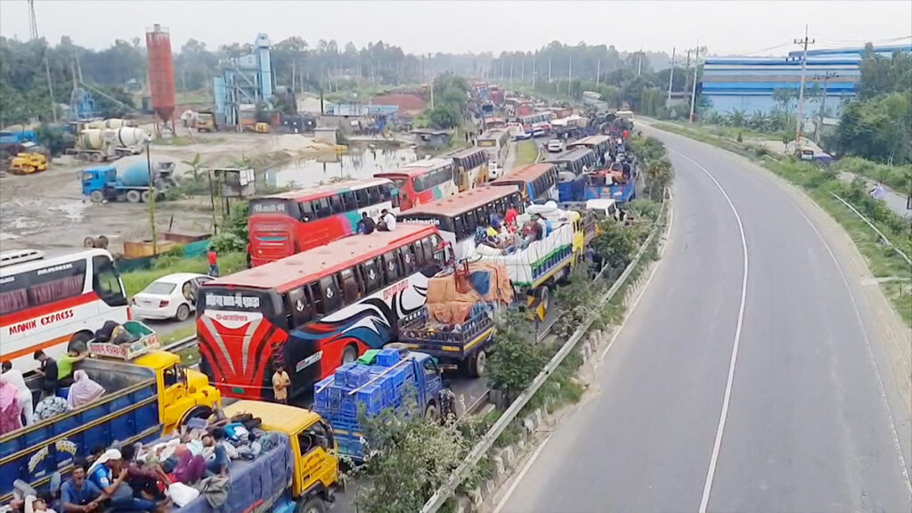 প্রিয়জনের সাথে ঈদ উদ্যাপন করতে বাড়ি ফিরছে মানুষ, রাস্তায় বেড়েছে গাড়ির চাপ।