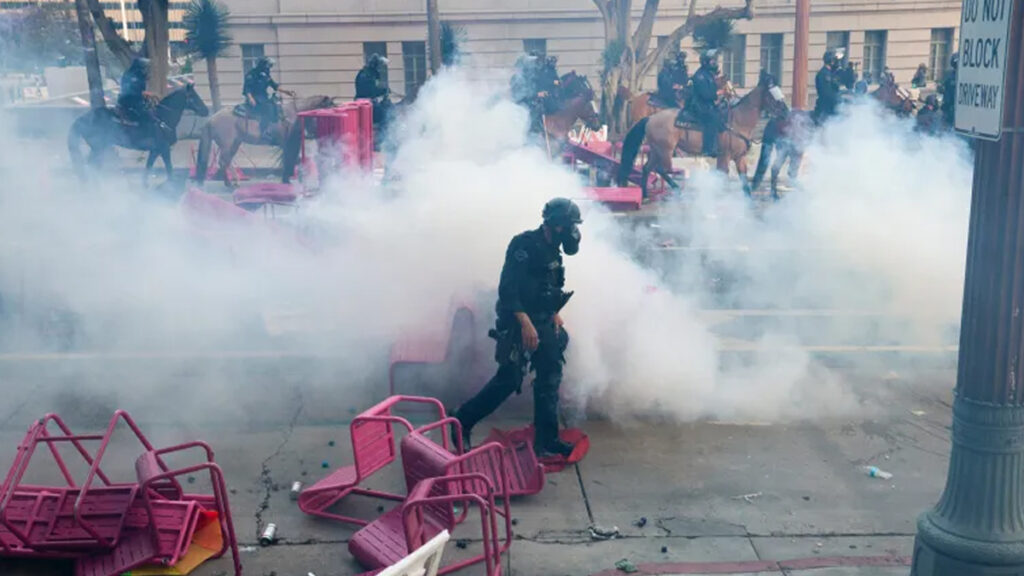বিক্ষোভ চলাকালে পুলিশ ও আন্দোলনকারীদের মধ্যে সংঘর্ষ বাধে। পরিস্থিতি নিয়ন্ত্রণে আনতে কাঁদানে গ্যাস ও ফ্ল্যাশ-ব্যাং গ্রেনেড ছোড়ে পুলিশ। প্রেসিডেন্ট ডোনাল্ড ট্রাম্পের নির্দেশে প্রায় ৩শ’ ন্যাশনাল গার্ড সদস্য লস অ্যাঞ্জেলেসে মোতায়েন করা হয়।