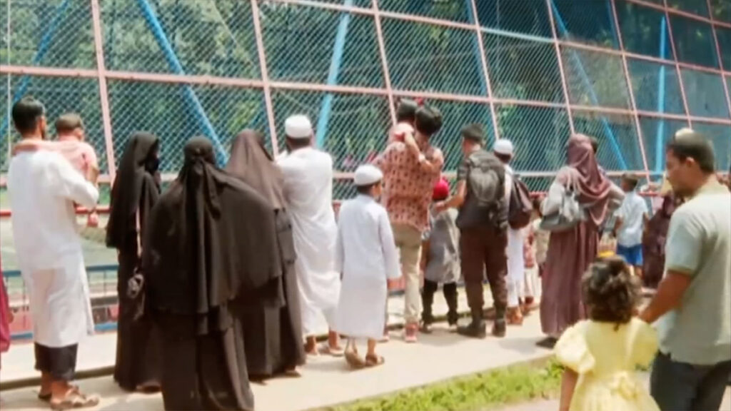 রাজধানীর মিরপুরে অবস্থিত জাতীয় চিড়িয়াখানায় দর্শনার্থীদের ঢল নেমেছে। ঢাকা শহরের পাশাপাশি দূরদূরান্ত থেকেও বাসে করে দল বেঁধে আসছেন অনেকেই। পরিবার ও স্বজনদের সঙ্গে ঈদ আনন্দ ভাগাভাগি করতেই এসেছেন তারা, এমনটাই জানিয়েছেন অনেক দর্শনার্থী।