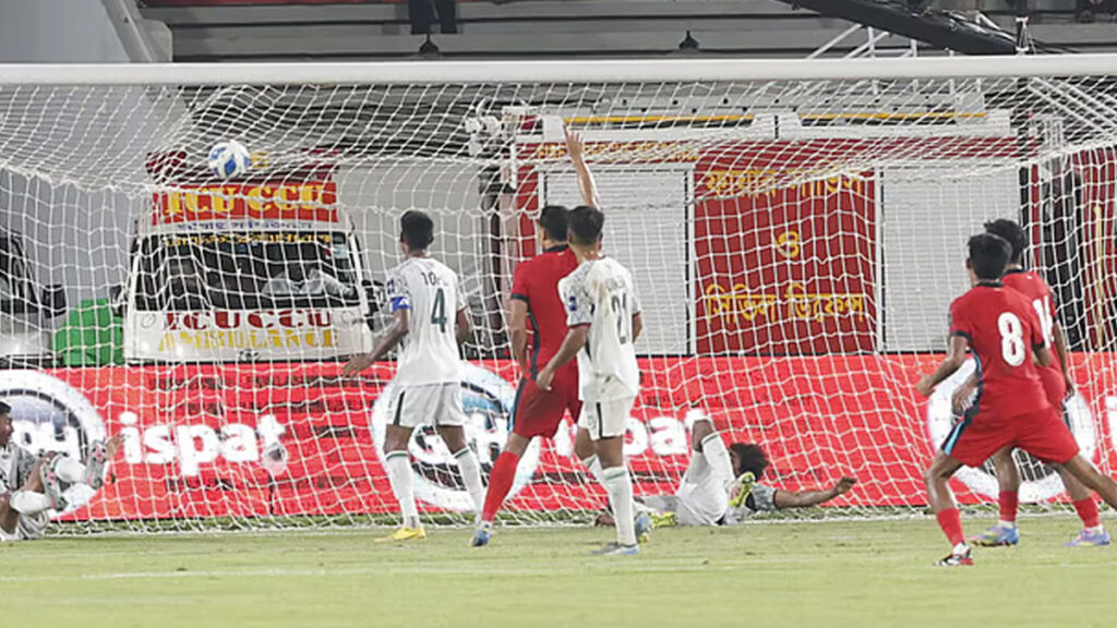 গোলকিপার মিতুল বল ফিস্ট করতে গিয়ে ব্যর্থ হন। বক্সের মধ্যে হেড থেকে বল পেয়ে শট নেন সিঙ্গাপুরের সং উই ইয়াং। দূর থেকে হামজা চৌধুরী বাঁচানোর চেষ্টা করেছিলেন, কিন্তু পারেননি। পিছিয়ে পড়ে বাংলাদেশ। বিরতির পর ৫৯ মিনিটে লিড দ্বিগুণ করেন ইসকান ফান্দি। গোলকিপার মিতুল চেষ্টা করেও ব্যর্থ হন।