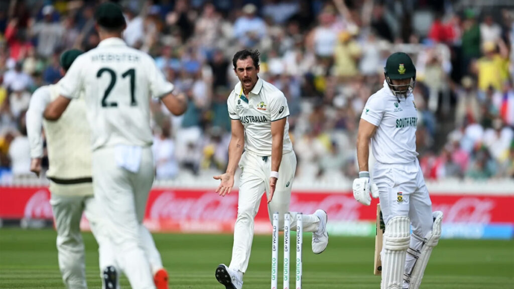 বুধবার (১১ জুন) লর্ডসে টস জিতে ফিল্ডিংয়ের সিদ্ধান্ত নেয় দক্ষিণ আফ্রিকা। নিজেদের প্রথম ইনিংসে ২১২ রানে গুটিয়ে যায় অস্ট্রেলিয়া। দিনের শেষ সেশনে ব্যাটিংয়ে নেমে মাত্র ৪৩ রানে ৪ উইকেট হারায় টেম্বা বাভুমার দল।