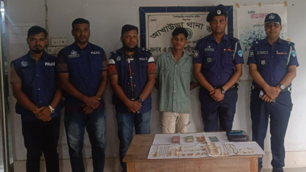 আখাউড়া থানার ওসি মোহাম্মদ ছমিউদ্দিন বিষয়টি নিশ্চিত করে বলেন, মেহেদী হাসান নামে ওই যুবক স্বর্ণালংকার বিক্রির জন্য শহরে ঘোরাঘুরির খবরে পুলিশ তাকে আটক করে। এসময় তার কাছ থেকে ২০ ভরি স্বর্ণালংকার উদ্ধার করা হয়- যা চুরি হওয়ার ভুক্তভোগী পরিবার তাদের বলে চিহ্নিত করেছেন। ওই বাড়ি থেকে প্রায় ৪০ ভরি স্বর্ণ চুরি হয় বলে থানায় লিখিত অভিযোগ করা হয়েছে।