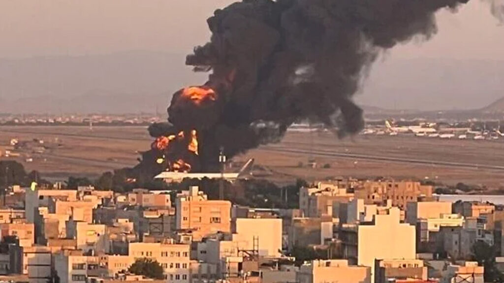 ইসরায়েলি হামলার পর একাধিক ভিডিওতে মাশহাদ বিমানবন্দরে আগুনের বিশাল গোলা দেখা গেছে।
