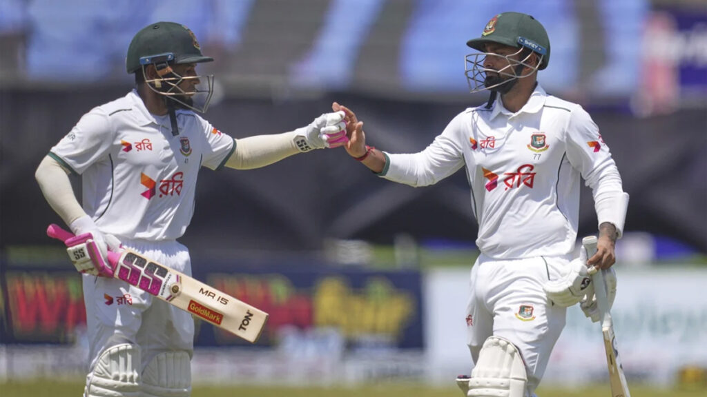 বুধবার (১৮ জুন) স্কোরবোর্ডে ৩ উইকেটে ২৯২ রান নিয়ে দিনের খেলা শুরু করে বাংলাদেশ। শুরুতেই বিদায় নেন অধিনায়ক শান্ত। আগের দিন ১৩৬ রানে অপরাজিত থাকা এ ডানহাতি ব্যাটার ব্যক্তিগত ইনিংসে এদিন যোগ করেন মাত্র ১২ রান। শান্তর উইকেটে ভেঙে যায় টাইগারদের ২৬৪ রানের চতুর্থ উইকেট জুটি।
