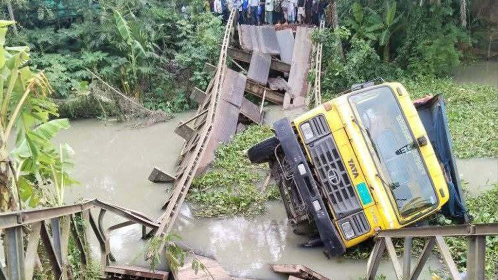জানা যায়, ভোররাতের দিকে প্রায় ২৭ টন কয়লা বোঝাই ট্রাকটি ব্রিজ পার হওয়ার জন্য উঠলে ব্রিজটি ভেঙে পরে। স্থানীয়রা জানান, এ ব্রিজটি অনেকটাই দুর্বল। পাঁচ টনের অধিক যানবাহন চলাচল আগেই নিষিদ্ধ করা হয়েছে। গতরাতে অতিরিক্ত কয়লা ভর্তি ট্রাক ব্রিজে ওঠার কারনে এটি ভেঙে পরেছে।